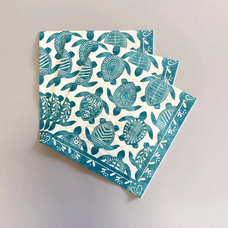 20Pcs/Pack Retro Blue Turtle Table Decoupage Paper Napkins