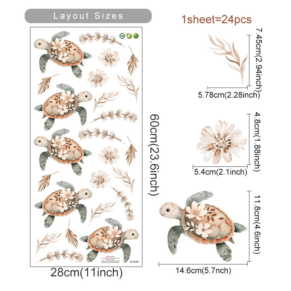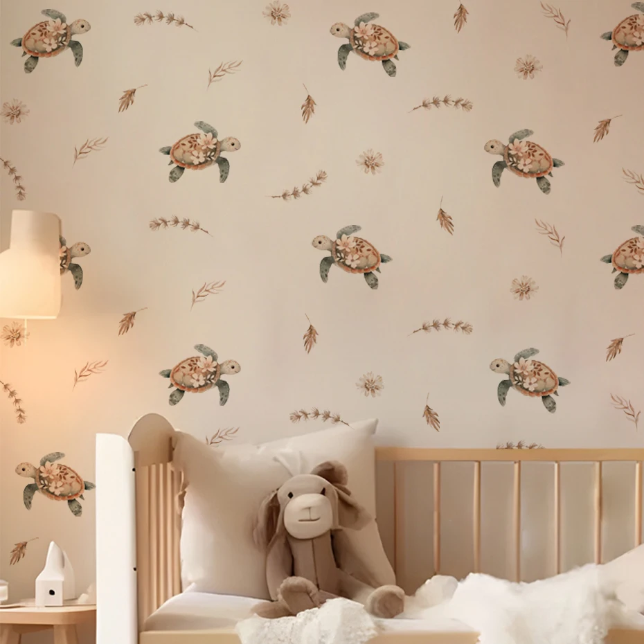 Cute Turtle Flower Leaves Stickers Wall Decoration
