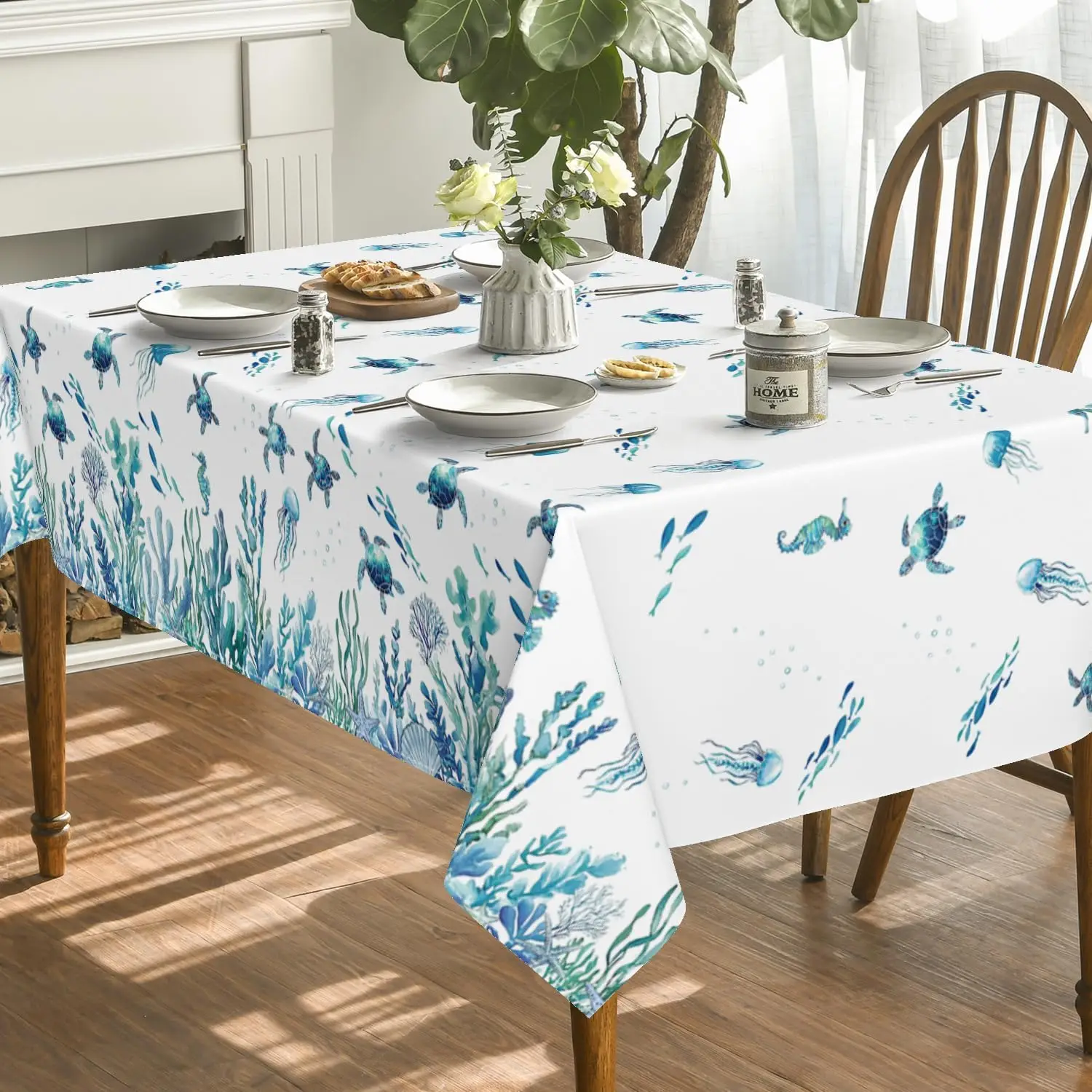 Sea Turtle Rectangle Waterproof Washable Tablecloth